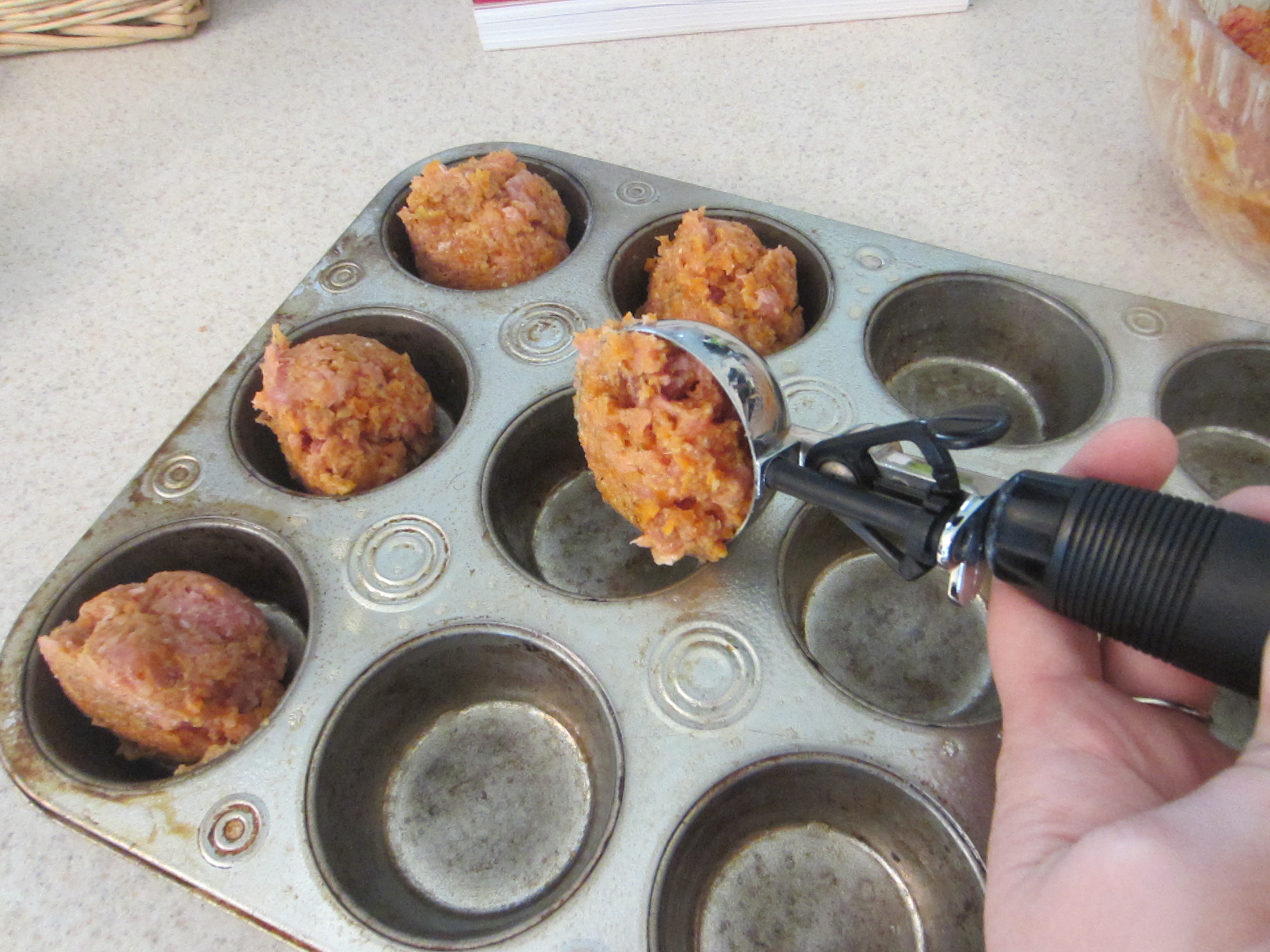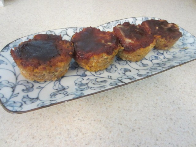 Bake at 350 degrees for 25 minutes or until muffins are 160 degrees. Let stand 5 minutes. Use a dull butter knife to help release meatloaf muffins from tins.
